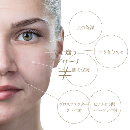 化粧品にほぼ必ず入っている「精製水」。私達はこの水に変わって、水分を「乳酸桿菌/加水分解発酵コラーゲンエキス」のみで構成しました。このエキスは非常に高価ですので、水を使わずこのエキスのみを触媒とした化粧品は日本初であろうと考えています。また、こうすることによって、皮膚への高い保湿性、成分が皮膚にしっかり浸透する含浸性、化粧品そのものの作用など、成果を得ることを可能としました。